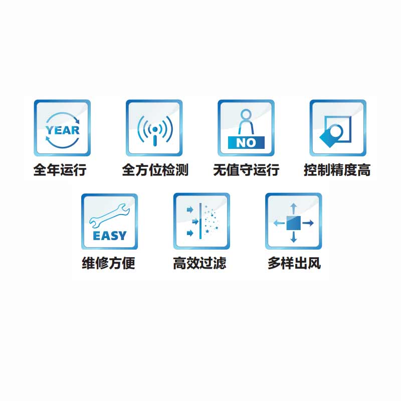 格力 JKF 系列风冷式机房专用空调机组,为计算机房、交换机房、数据机房、传输机房、电源机房、 电子设备间等场所提供诸如空气循环、空气过滤、冷却、再热及湿度控制等功能,保证设备环境满足正 常使用需求。产品冷量范围 5kW ~ 100kW。所有机组均预留远程监控功能,并可扩容至最多 253 个模块 组合运行。