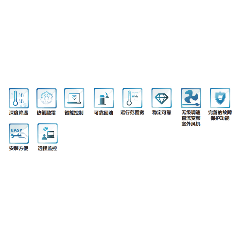 格力低温排管专用冷凝机组 , 采用高效低温涡旋压缩机,蒸发温度范围 -40℃~ -5℃;搭载热氟融 霜技术,显著提升化霜效率;系统配置大容量储液器、汽液分离器及高效油分离器,设计有宽大空间金 属壳体、防尘防护 IP 等级高。 机组可灵活搭配各种工程排管使用,广泛适用于各种冷冻库、速冻库等。